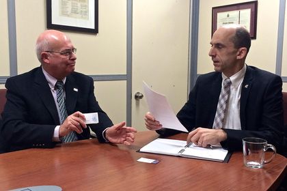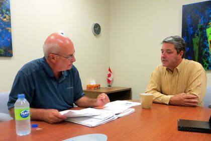 L'AMDEQ a réussi un tour de force. M. Yves Servais, directeur général de l'Association a rencontré au cours des deux derniers mois, les représentants des quatre formations politiques, soit le Bloc Québécois, le NPD, le Parti Libéral du Canada et le Parti Conservateur, pour les sensibiliser sur le dossier des taux d'utilisation des cartes de crédit. Sur la photo, M. Steven Blaney, député conservateur de Lévis-Bellechasse, qui a pris connaissance des documents présentés par M. Servais, lors d'une rencontre qui a eu lieu vendredi dernier.