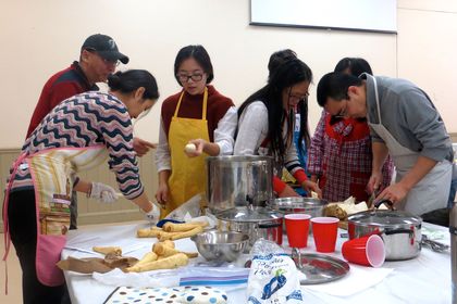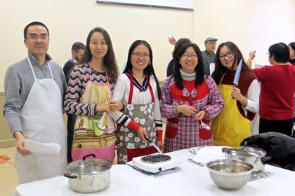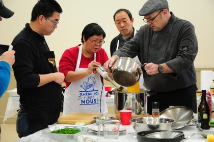 Initiation à la cuisine québécoise lors d'un atelier qui a permis de préparer un très bon menu pour la période des Fêtes, sous la supervision du chef, Laurent Anne.