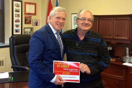 M. Servais a présenté le slogan retenu sur les affiches qui seront bien en vue dans les dépanneurs: « Moins de 25 ans? Pas de carte, pas de tabac - pièce d’identité obligatoire »