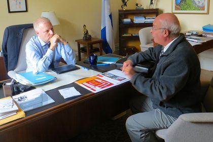 Toujours dans le même ordre d’idée, nous avons de nouveau rencontré M. François Paradis, député de Lévis, porte-parole de la deuxième opposition de la santé publique. Lors de cette deuxième rencontre, M. Paradis a réaffirmé son appui aux demandes et préoccupations de l'AMDEQ et entend les faire valoir lors de l’étude article par article du projet de loi. M. Paradis a félicité l'Association pour la mise en place de sa propre campagne de sensibilisation pour le « cartage obligatoire ». À ce sujet, il soutient que le gouvernement, avant d'adopter la ligne dure relativement aux fortes amendes à l'endroit de ceux qui vendraient du tabac à des personnes d'âge mineur, devrait investir et surtout convaincre les clients de moins de 25 ans, que le « cartage » est obligatoire au Québec.